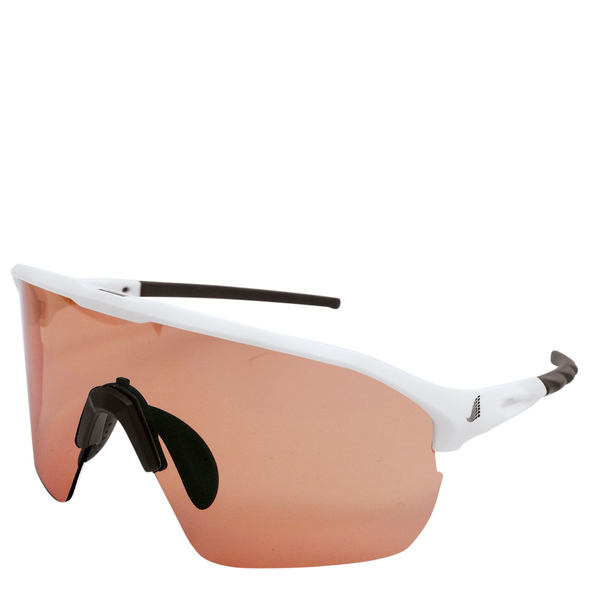 Moderne Sportbrille im aktuellen Shield-Design für den Outdoor-Bereich. Der Rahmen ist matt Weiß mit dezentem Bigwave-Logo.