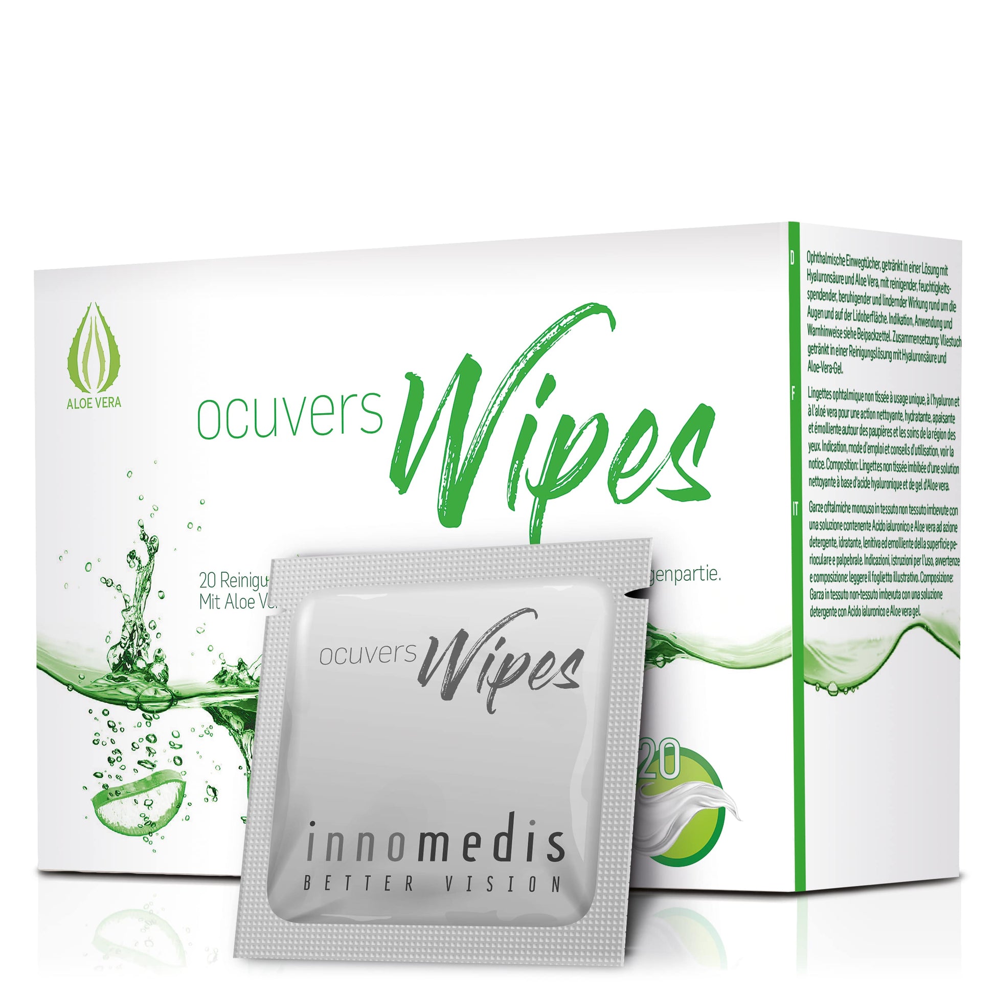 ocuvers wipes sind mit einer Lotion aus Natriumhyaluronat und AloeVera getränkt und sind einzeln verpackt. So kann die Lidrandpflege auch ideal unterwegs vorgenommen werden.